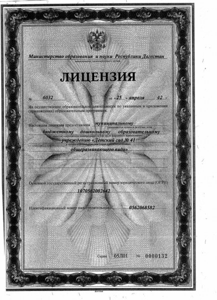 Полное наименование образовательной организации* Муниципальное бюджетное дошкольное образовательное учреждение "Детский сад № 41" общеразвивающего вида города Махачкалы